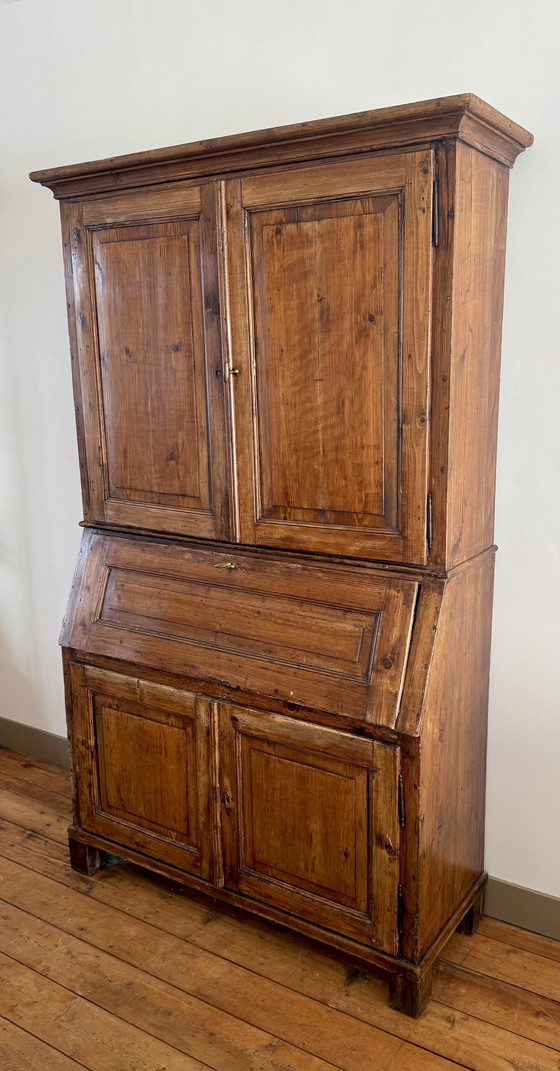 Ce magnifique meuble bureau en pin a résisté à l'épreuve du temps. Avec son aspect chaleureux, son abattant pratique et ses tiroirs originaux, il ne s'agit pas seulement d'un meuble fonctionnel, mais aussi d'une tranche d'histoire pour votre intérieur. Parfait pour un bureau ou comme élément de décoration dans votre salon.