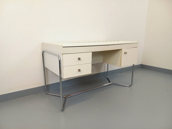 Bureau vintage style Bauhaus en mélaminé et métal chromé des années 70