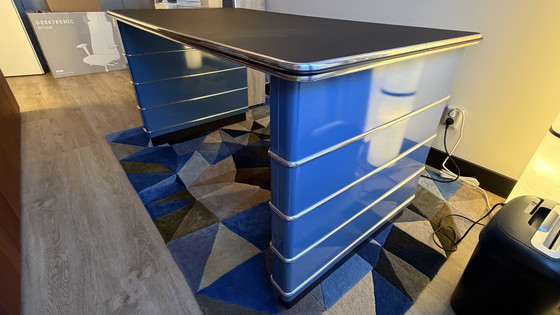 Découvrez le bureau/table de conférence Muller, arborant une superbe finition bleu brillant. Ce meuble allie à la perfection design moderne et fonctionnalité, idéal pour les espaces professionnels comme pour les bureaux à domicile. Sa couleur vibrante et ses lignes épurées en font une pièce maîtresse qui s'intègre harmonieusement à tous les intérieurs. Fabriqué en métal de haute qualité, il allie durabilité et esthétique contemporaine.