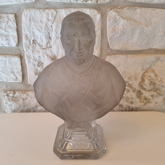 Buste ancien en cristal St Louis Pape Pie IX rare. Sur le buste à l’arrière : gravé St Louis Déposé. État : quelque petites traces sur le visage, bien regarder les photos. Hauteur totale : 26 cm environ / Largeur au plus large : 18 cm / Socle 10 x 10 cm / Poids 3.850 kg. Envoi soigné.
