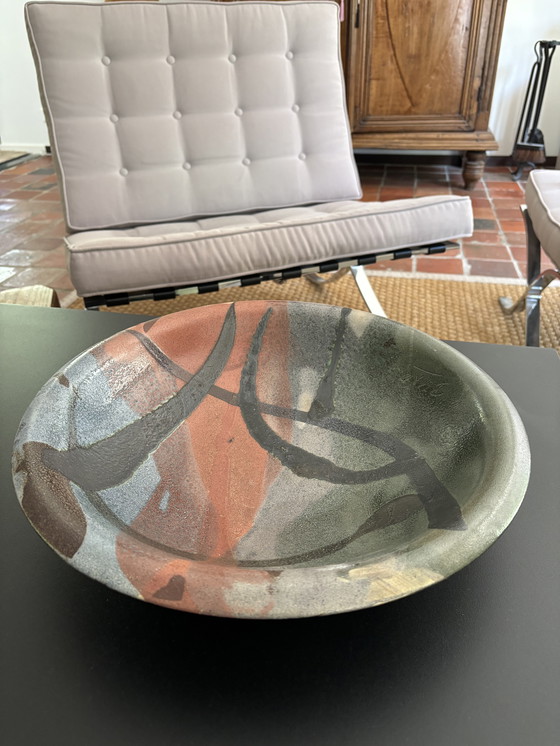 Mooie schaal met slechts gebruiksporen aan de onderkant van de schaal. Découvrez l'attrait de ce bol Buxo vintage, une pièce signée qui ajoute une touche artistique à n'importe quel espace. Son mélange unique de tons terreux et son design abstrait en font une pièce maîtresse captivante.