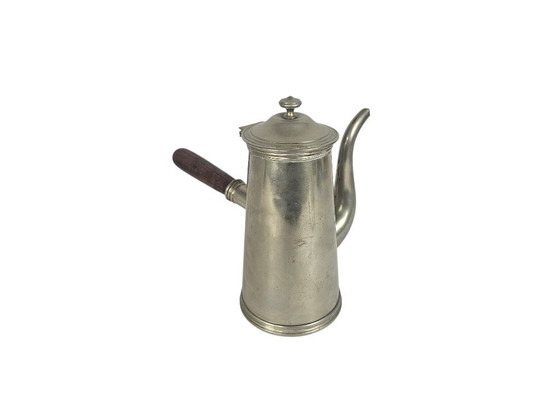 - Fabriquée en métal argenté de haute qualité avec une poignée en bois, cette cafetière allie style et fonctionnalité.