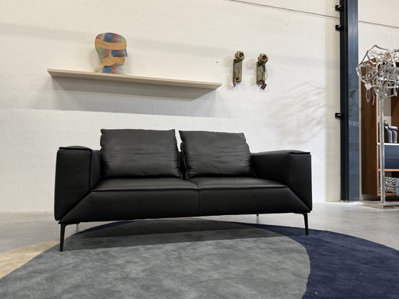 Magnifique canapé design Longueville de Jori, confectionné en cuir noir Lipano.