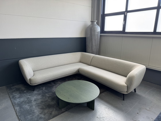 Ce canapé Leolux Flint est en excellent état et prêt à l'emploi. Il se compose d'un canapé modulable 3 places avec accoudoir droit et d'un grand canapé modulable avec accoudoir gauche. Le Flint est revêtu de tissu Varese 22 Angora. Les pieds sont finis en époxy E2200 Nuit Silk.