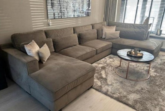 Canapé d'angle XXL de luxe en taupe - Aussi bon que neuf