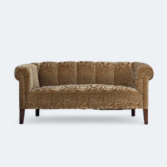 Canapé danois 3 places des années 1960. Velours d'ameublement vert, ressorts en laiton dans l'assise et le dossier, pieds en frêne. Le canapé a été retapissé par un artisan il y a environ 15 ans. Très bon état : pas d'odeurs, pas de taches, et construction stable. Fabriqué par un fabricant de meubles danois dans les années 1955-60. Original Scandinavian craftsmanship vintage design directement du Danemark. Le canapé a été vérifié par un artisan.