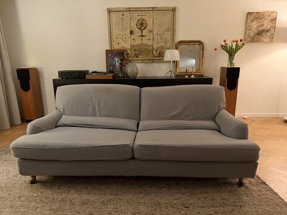 Ce canapé design vintage de DePadova, signé Vico Magistretti, est un modèle élégant et intemporel qui allie style et confort. Son revêtement entièrement déhoussable en coton gris de haute qualité est impeccable.