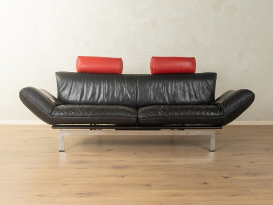 Le canapé DS 140, conçu par Reto Frigg pour le fabricant suisse de Sede, date des années 1980 et incarne le langage expérimental du design postmoderne. La géométrie de sa structure, associée aux appuie-têtes rouges réglables, crée un contraste saisissant. Les accoudoirs rabattables confèrent une grande flexibilité au design. Un cuir noir d'origine de grande qualité se marie harmonieusement à une structure chromée aux lignes épurées et précises. Le revêtement haut de gamme et les matériaux durables témoignent d'un savoir-faire exceptionnel. Un objet intemporel, soigneusement nettoyé et en bon état vintage.