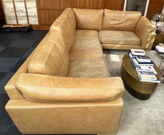 Canapé d’angle en cuir naturel de la marque De Padova, modèle Square 16, couleur Sienna (cognac)