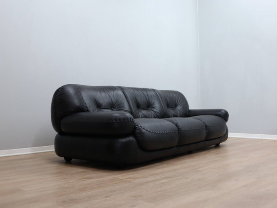 Canapé Sapporo 3 places en cuir noir de Mobil Girgi, années 1970