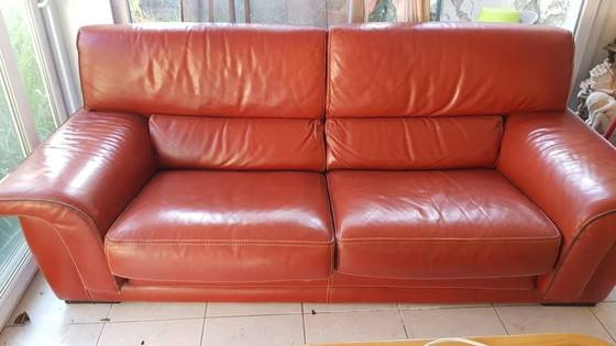 Achat neuf (avec facture) en 2001, très bien entretenu et stocké mais peu servi. Canapé robuste en cuir de buffle très confortable.