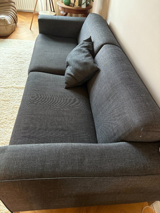 Ce canapé trois places est devenu une icône du design. Ses pieds en aluminium poli, spécialement conçus, soulignent le côté à la fois robuste et raffiné du canapé Bloq.