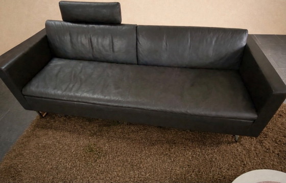 Fabriqué en cuir de haute qualité, ce canapé, bien qu'ayant déjà servi, est en bon état et dégage une élégance intemporelle qui s'intègre harmonieusement à tous les intérieurs.