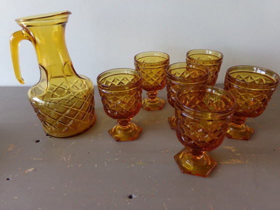 Ajoutez une touche de charme vintage à votre table avec cet ensemble élégant de carafe et ses six verres en verre ambré. Parfait pour les réceptions ou les dîners en famille, cet ensemble se distingue par son design raffiné et sa couleur chaleureuse.
