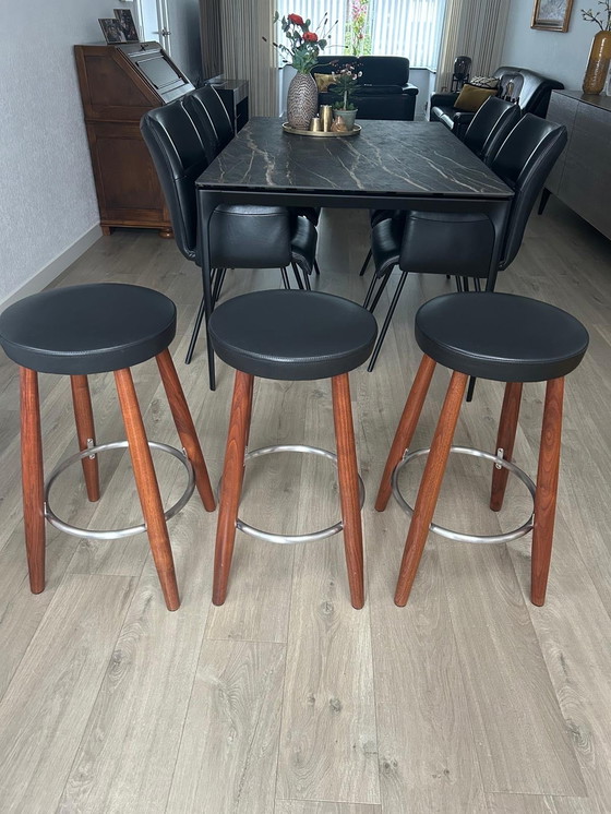 Carl Hanson & Son 3x tabourets de bar en noyer avec assise en cuir