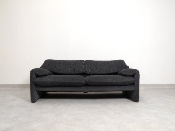 Canapé 2,5 places Cassina Maralunga (190 cm de large) en velours bicolore gris foncé, conçu par Vico Magistretti pour la marque italienne Cassina.