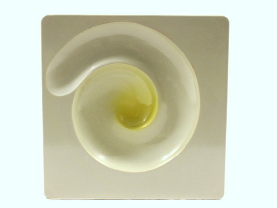 Artemide Milano Ashtray By Eleonore Peduzzi Description Cendrier italien de forme unique conçu par Eleonore Peduzzi Riva en 1969. Malheureusement, la boule assortie est manquante. Attention : décoloration visible. Hauteur : 4 cm Largeur : 21,5 cm Profondeur : 21,5 cm