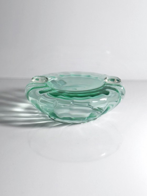 Cendrier en verre italien / Vide Poche vert turquoise années 1950, soufflé à la bouche
