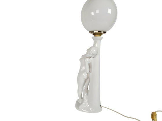 Belle lampe de table en céramique de Ceramiche Munari en Italie. Très émaillée. La lampe, ampoule comprise, mesure 54 cm de haut. Le diamètre de l'ampoule est de 15 cm. La hauteur de la dame est de 32 cm, la base de la lampe est de 15 x 13 cm. La lampe est en excellent état, sans défauts. Avec cordon d'alimentation et interrupteur. L'éclairage est visible sur les photos. Le poids de la lampe est de 1755 grammes.