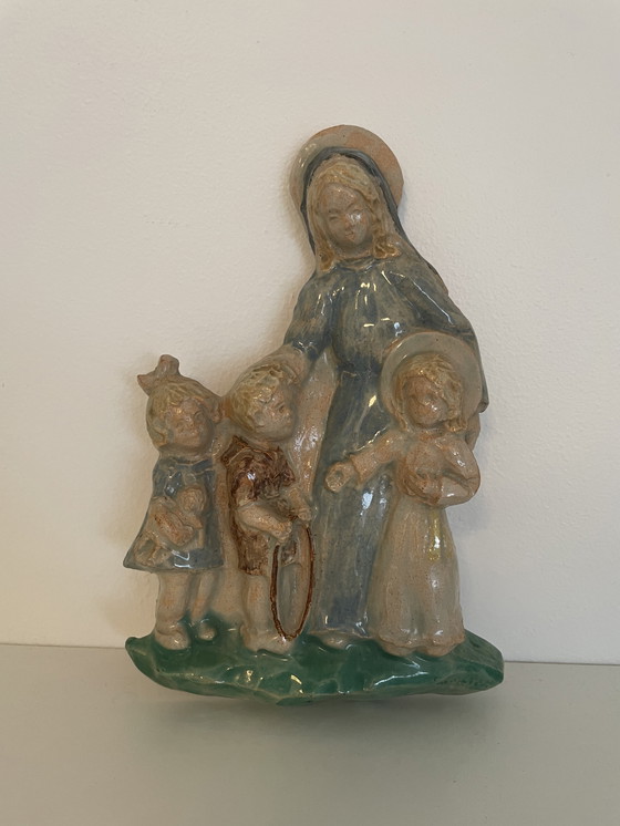 Figurine en céramique à suspendre. Signée par l'artiste sous la base et « GIT Tegelen » au dos. Hauteur : 20 cm. Largeur : 14 cm. Vers 1940. En parfait état.