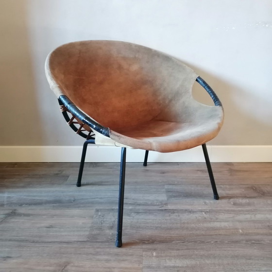 Une magnifique chaise-baignoire, également appelée chaise-ballon. Conçue par Lusch Erzeugnis. Produite en Allemagne par Lusch & Co dans les années 1960. Il s'agit d'une chaise inhabituelle dotée d'une structure en métal noir et d'une assise en cuir suédé taupe/beige. Le daim donne un aspect "usé" et sa légèreté permet de l'ajouter et de la déplacer facilement. Les joints en daim à l'arrière constituent un détail intéressant. Dimensions : H70 x L70 x P70 H70 x L70 x P70 cm. La hauteur du siège est de 38 cm. Compte tenu de son âge, cette chaise est en bon état. Cette chaise robuste est magnifique pour le salon. C'est une chaise urbaine chic !