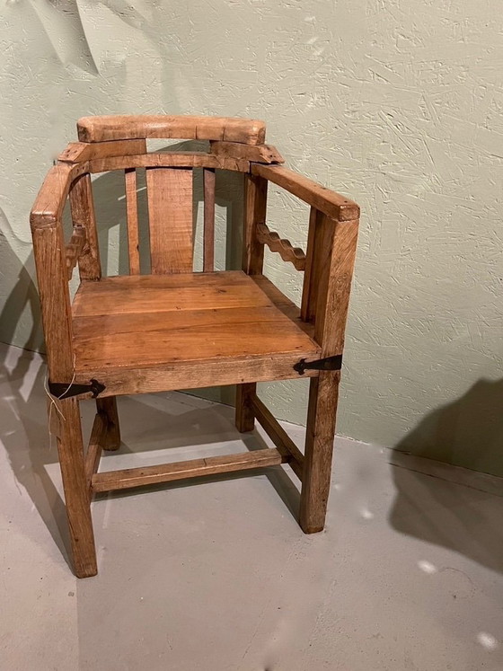 Malheureusement, je n'en ai qu'un exemplaire, mais cette chaise faisait probablement partie d'un ensemble. Car, tout comme on trouve beaucoup de chaises Thonet dans les cafés et des chaises Gispen ou Ikea autour de la table à manger, ce modèle de chaise était autrefois un standard en Inde. Et celle-ci est une belle et charmante pièce ancienne.