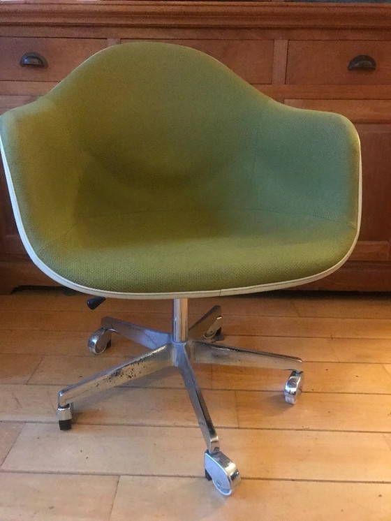 À vendre : un magnifique fauteuil Eames Shell original sur piètement mobile – un véritable classique pour les amateurs de design intemporel.