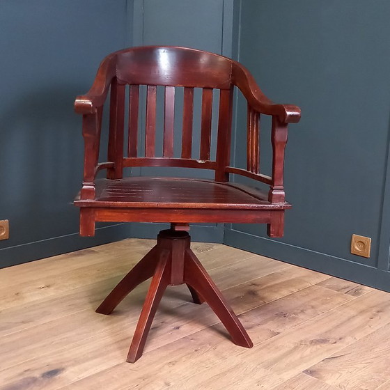 Découvrez cette magnifique chaise de bureau en acajou, datant du début du siècle dernier. La chaise présente un design élégant et intemporel et offre un excellent confort d'assise, idéal pour un bureau à domicile élégant.