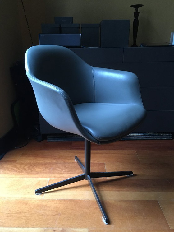 Fauteuil pivotant en cuir gris avec piètement en métal noir de BPA Italia [prix public conseillé : 1 800 €]