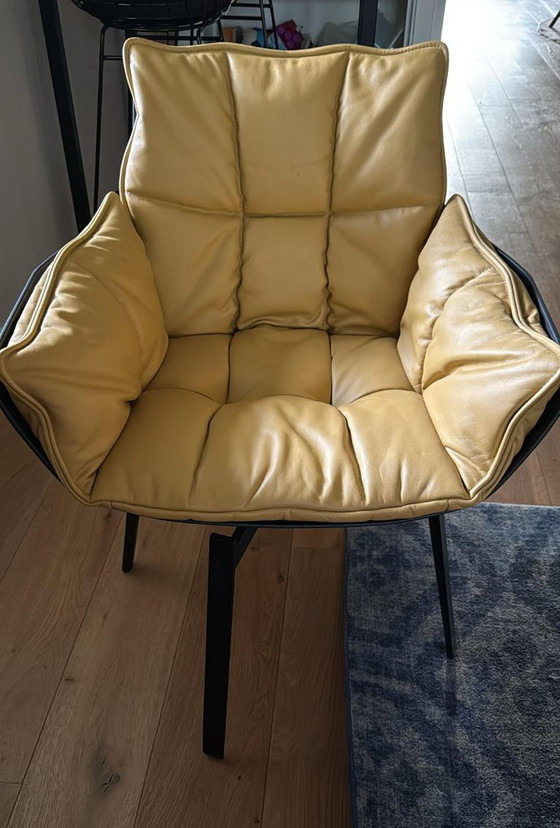Découvrez la chaise de salle à manger pivotante Husk de B&B Italia, une magnifique création de la célèbre designer Patricia Urquiola. Cette chaise incarne l'alliance parfaite entre esthétique moderne et confort inégalé, ce qui en fait un atout idéal pour tout espace repas raffiné. Son coussin en cuir jaune souple offre un confort exceptionnel, soutenu par une élégante coque en plastique noir qui apporte une touche contemporaine. Les pieds robustes en métal garantissent stabilité et durabilité, tandis que la fonction pivotante offre une flexibilité et une facilité d'utilisation accrues. Conçue par Patricia Urquiola, cette pièce témoigne de l'engagement de la marque envers la qualité et l'innovation, valeurs fondamentales de la prestigieuse réputation de B&B Italia. Sublimez vos repas avec cette chaise élégante, symbole de design moderne et de confort luxueux. Demandez un devis dès aujourd'hui et intégrez-la à votre intérieur.