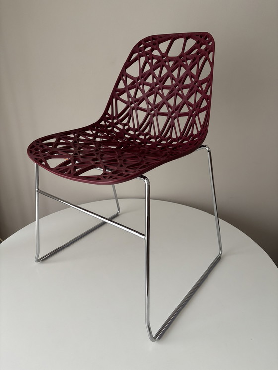 La chaise Crassevig Nett, conçue par le designer néerlandais Ton Haas en 2005, est une chaise légère et empilable fabriquée en nylon renforcé de fibre de verre. La chaise convient aussi bien à l'intérieur qu'à l'extérieur et ce modèle concerne la chaise en porte-à-faux. Ton Haas est un designer néerlandais connu pour son approche innovante du design industriel. Il allie fonctionnalité et esthétique et utilise souvent des techniques de production modernes et des matériaux tels que le plastique et la fibre de verre. Son travail se caractérise par des designs minimalistes, pratiques et polyvalents. Haas est spécialisé dans la conception d'ustensiles et de meubles à la fois élégants et fonctionnels. Il travaille souvent avec des technologies avancées telles que le moulage par injection pour créer des produits durables et accessibles. Ton Haas a collaboré avec plusieurs marques internationales, dont Crassevig, et ses créations sont appréciées dans le monde entier, que ce soit dans des projets commerciaux ou résidentiels.