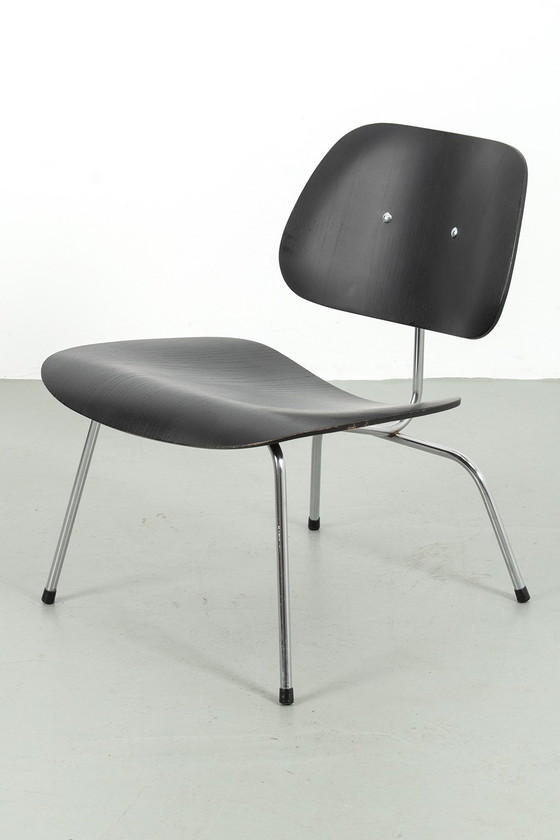Fauteuil Eames LCM pour Vitra. Conçu il y a longtemps par Charles et Ray Eames, ce fauteuil est toujours produit. Cet exemplaire est une édition plus récente fabriquée par Vitra. Il est en contreplaqué avec une structure tubulaire chromée. Les boulons du dossier ne sont pas d'origine. Hormis ce détail, il est en bon état vintage.