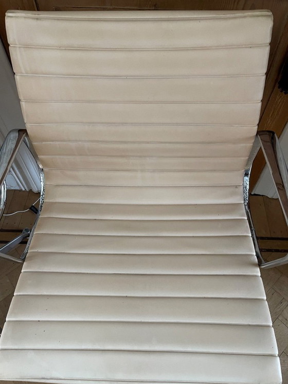 Découvrez l'élégance intemporelle de cette chaise Eames originale des années 1960-1970, un chef-d'œuvre emblématique du design Mid-Century Modern. Revêtue de son tissu beige d'origine, cette chaise offre un confort optimal et une allure raffinée qui sublimera n'importe quel espace. Sa structure métallique robuste garantit durabilité et élégance, ce qui en fait un choix idéal pour les amateurs de design et de fonctionnalité. Apportez une touche de charme vintage à votre intérieur avec cette magnifique pièce.