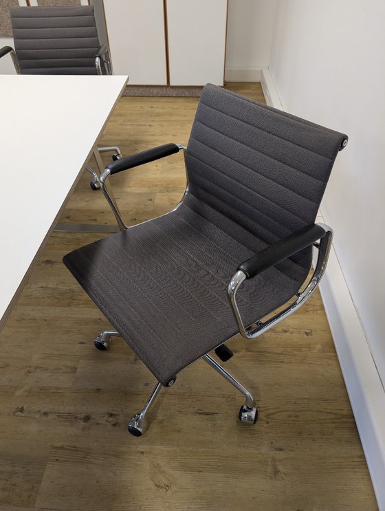 Chaises Eames originales en aluminium Vitra : 1 chaise modèle EA 117. Conçues par Charles et Ray Eames, ces chaises sont des icônes du design intemporel, incarnant l’élégance et le confort. Une seule chaise est à vendre ; deux sont disponibles.
