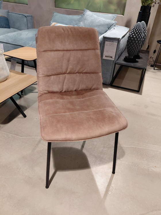 La chaise de salle à manger Aurora de la collection XOOON offre un confort d'assise exceptionnel. Son assise est revêtue d'un velours camel d'une douceur incomparable. Le piètement en métal noir lui confère une allure robuste. Ce lot comprend quatre chaises.