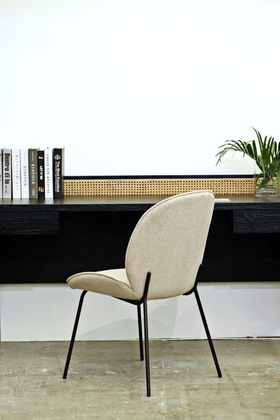 Chaises de salle à manger Paul Rogers Hella (lot de 2). Chaise élégante et raffinée de la marque Paul Rogers. Deux chaises disponibles. Pieds en acier noir, assise et dossier rembourrés.