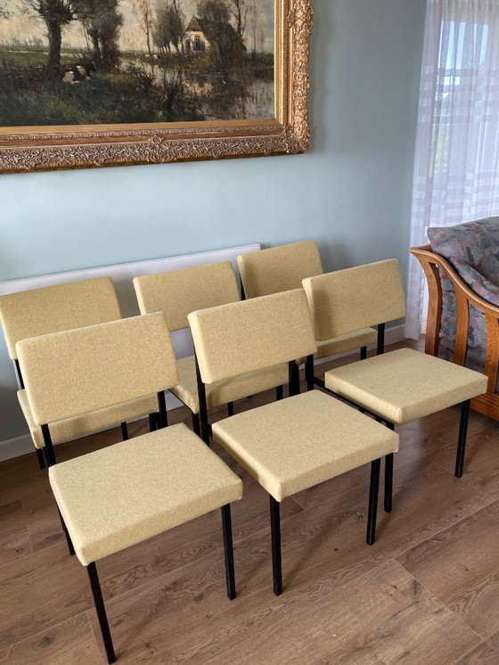 Six magnifiques chaises de salle à manger dans le style épuré de Martin Visser. Je n'ai pas encore trouvé le modèle exact de ces chaises, la question a également été posée à Spectrum Design lui-même mais malheureusement ils ne peuvent pas encore me le dire non plus. Les chaises sont dotées d'une nouvelle mousse froide et sont revêtues du tissu d'ameublement en laine Synergy de Camira fabrics. La laine chaude se marie bien avec le cadre en fer épuré. Les chaises peuvent être livrées sur demande.