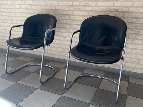 Chaises design vintage en cuir noir / Fabriquées en Italie, état neuf