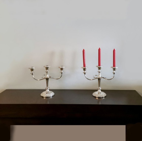 Chaque bougeoir pèse près de 870 grammes. Ils sont en bon état, sans bosses ni creux, mais la base présente un léger manque dans le placage d'argent.