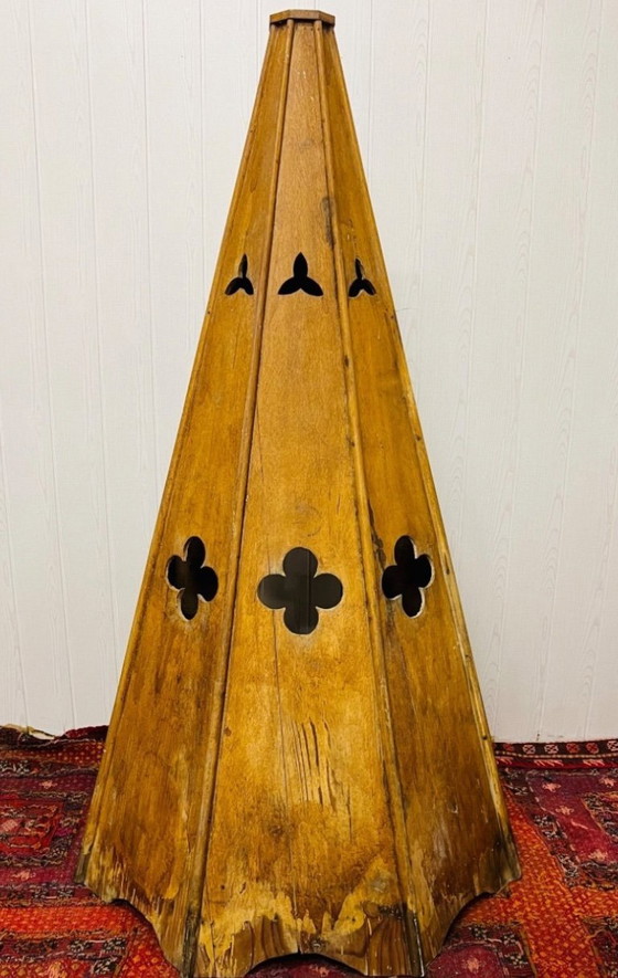 Un Intéressant Élément D'Architecture Religieuse En Bois. En Forme De Chapiteau, Élément De Chaire Ou De Protection D'une Statue. Bon État Général, En Bois, Peinture Faux Bois. Plus De Photos Sur Simple Demande.