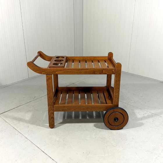 Chariot de jardin classique en bois Herlag, chariot de service des années 1980