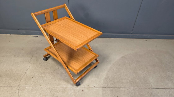 Chariot de bar italien pliable en bois, très pratique.