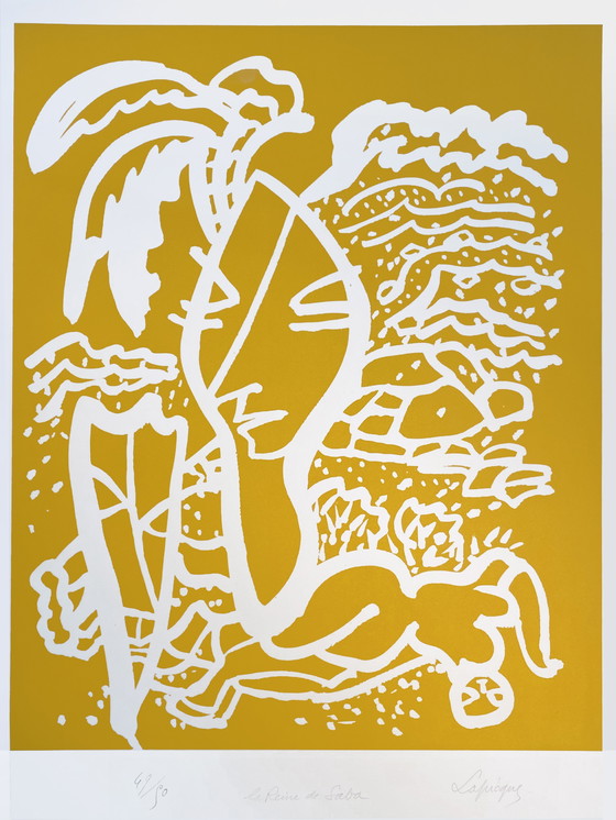 ÉtatExcellentCouleursJaune, OrangeMatériauPapierQuantité1OrientationPortraitDimensionsMoyenHauteur69 cmLargeur59 cm
