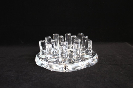 Découvrez un magnifique chauffe-plat en verre des années 1970, fabriqué en verre épais à la verrerie Georgsmarienhütte. Cette pièce vintage séduit par sa transparence et ses tiges originales, lui conférant un charme unique, typique du design moderne du milieu du siècle. Idéal pour apporter une touche d'élégance rétro à votre intérieur.