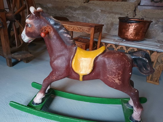 Ce charmant cheval à bascule en papier mâché des années 1950 est une pièce unique qui évoque la nostalgie des époques révolues. Avec son design vintage et ses couleurs éclatantes, c'est un objet décoratif idéal pour apporter une touche d'histoire et de charme à votre intérieur.