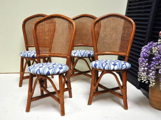 Cinq chaises de salle à manger vintage en bambou avec un nouveau revêtement en majorcan