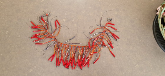 Ce magnifique collier Langani est une véritable œuvre d'art qui apporte une touche d'originalité à toutes vos tenues. Son design unique mêle avec fantaisie des éléments rouges, oranges et argentés, créant un motif dynamique et vibrant. Parfait pour les grandes occasions ou pour égayer votre look du quotidien.