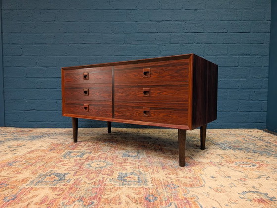 La bibliothèque est d'une belle facture. La jolie structure et les poignées sont typiques de Brouer. Le magnifique palissandre présente un veinage superbe.