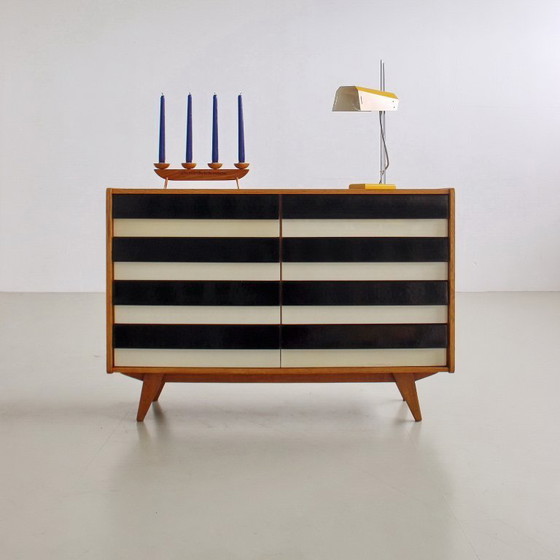 La légendaire commode U-453, conçue par le designer tchèque Jiří Jiroutek dans les années 1960 et fabriquée par Interier Praha, a acquis une renommée internationale, notamment grâce au succès du pavillon tchécoslovaque à l'Expo 58 de Bruxelles, où son design moderne et fonctionnel a été largement salué.