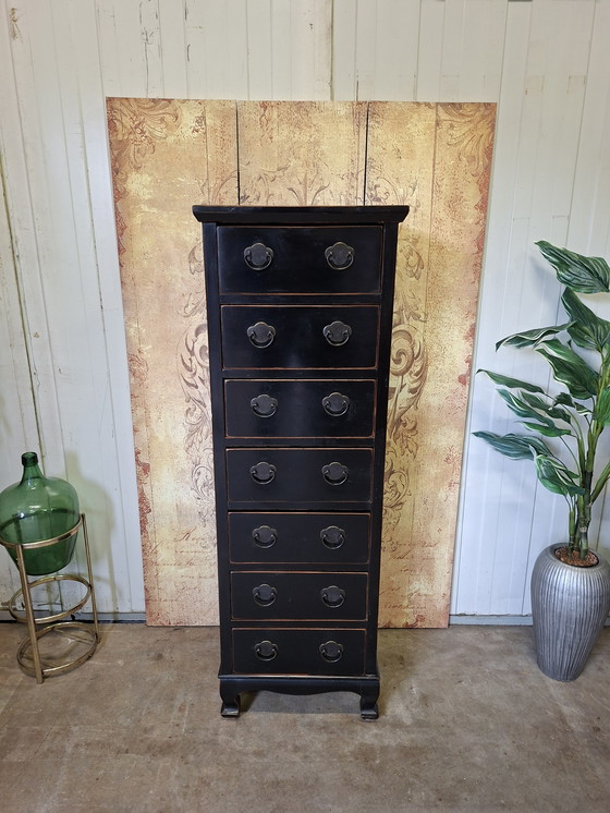 Cette haute commode chinoise, également appelée armoire d'apothicaire ou classeur, est un exemple raffiné du savoir-faire traditionnel asiatique. Avec son élégante finition noire et ses authentiques poignées en métal, elle apporte une touche d'élégance orientale à votre intérieur.